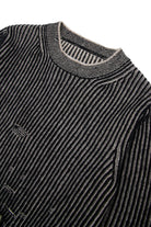 Pullover in lana a coste bicolor, morbido e caldo. Le rotture rammendate aggiungono un effetto vissuto autentico, per un look ricercato e di carattere.