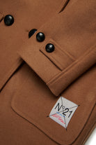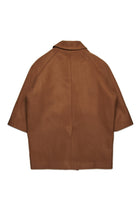 Cappotto doppiopetto egg-shape in panno con imbottitura leggera per una vestibilità comoda e moderna. Il colletto in melton a doppio colore aggiunge un tocco originale, mentre i maxi bottoni rivestiti donano carattere al capo.