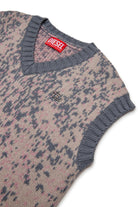 Sleeveless wool-blend knit dress with V-neck. The Acid Rain pattern gives a distinctive effect, while the metallic detail on the heart adds a refined touch. Perfect for an original and sophisticated look.
