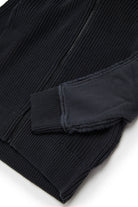 Long-sleeved sweater with sweatshirt shape. The mix of fabrics with rib knit on the front creates a dynamic effect, emphasized by the raw-cut finish, while the oversize fit ensures comfort and style.
