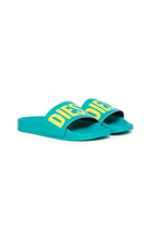 Slide sandals with a contrasting logo on the strap. Essential design, ideal for adding a distinctive touch to your look.
