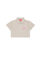 Short-sleeved shirt with embroidered logo on the front pocket, made from lightweight cotton for a fresh, casual style.