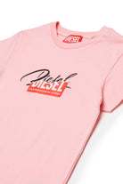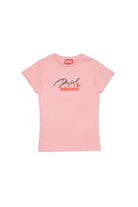 Cotton jersey T-shirt with glittery cursive logo superimposed on the Diesel for successful living logo.