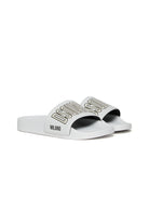 Modern design slide slippers. Dsquared2 Milano logo in contrasting colour. Made of polyurethane. Made in Italy.