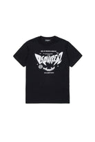 Soft cotton jersey short-sleeved T-shirt with Dsquared2 glossy effect print in contrasting color. The graphic inspired by horror imagery gives an original and out-of-the-box aesthetic.