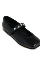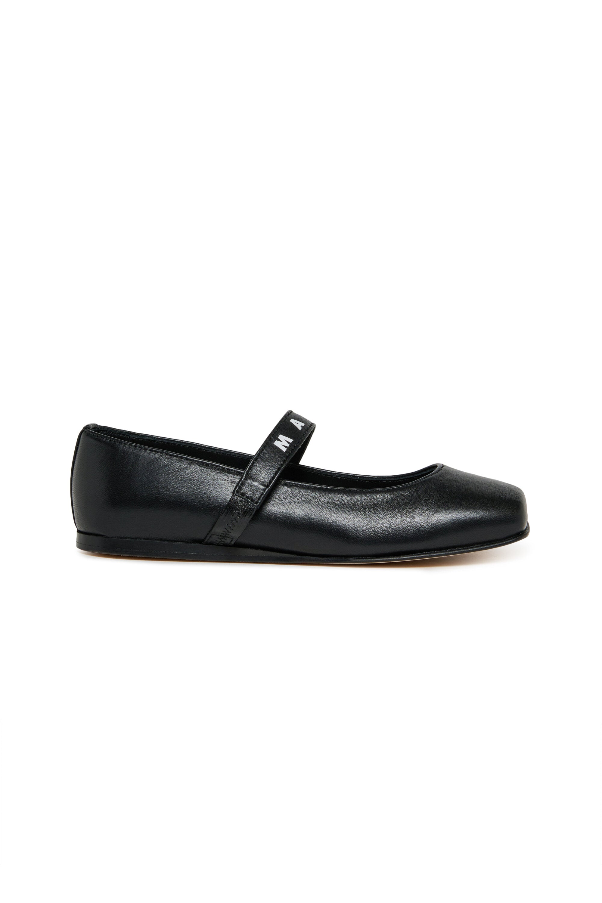 Ballet flat with upper strap, embellished with a contrasting logo.