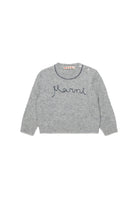 Crew-neck, long-sleeved, wool-blend cashmere sweater with ribbed cuffs, hem and collar. Features a contrasting embroidered Cursive Marni logo on the front.