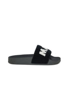 Modern design slide slippers. Terrycloth upper with maxi Marni! logo embroidered in contrasting colour. Polyurethane sole. Made in Italy.