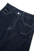 Denim shorts with logo, contrast stitching, and classic five-pocket detailing.