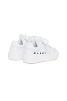 Low lace-up trainers with institutional logo printed in contrasting colour on the side. Perforated toe. Calf leather upper. Thermoplastic rubber sole. Made in Italy.
