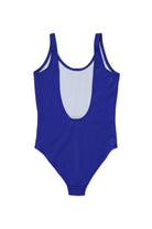 One-piece swimsuit with front logo, featuring thin straps and a deep back neckline