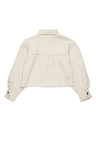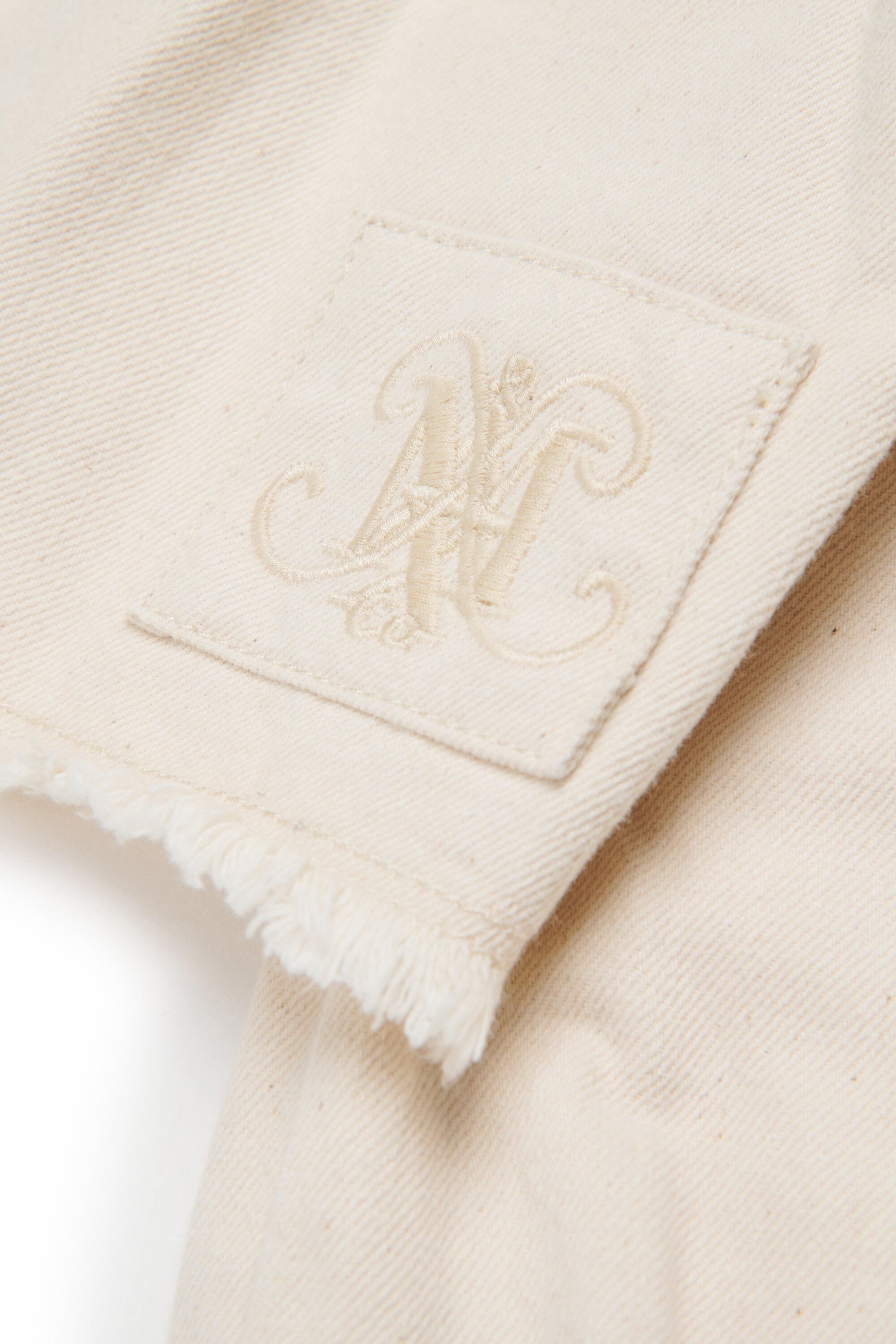 Long-sleeved boxy shirt in heavy cotton drill. Raw-cut hems give it a bold, contemporary allure. Also usable as an overshirt, it is distinguished by the footage on the back, which adds volume and personality.