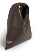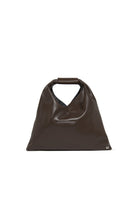 Coated fabric Mini Japanese Bag. Characterised by a triangular silhouette and buttons at the edges that allow the bag to change shape by folding it in different ways, a clear reference to the aesthetic code of the French Maison. The handle features a leather part with numerical logo. It is MM6's most emblematic accessory, taken from the adult collection.