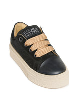 Low suede sneakers with a platform sole and leather toe designed to combine comfort and style for everyday occasions. Versatile and trendy, they add a contemporary touch to any look.
