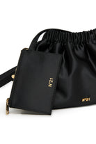 Shoulder bag with logo and gathered closure, featuring a soft silhouette and adjustable shoulder strap.