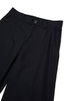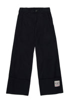 Pants with applied logo on the leg, featuring a wide, turned-up hem and tailored details.