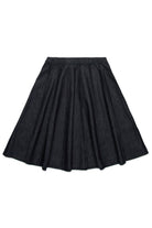 Dark raw denim midi skirt with wedge construction and flared silhouette gives a modern and dynamic feel. Perfect for a variety of occasions, it combines versatility and style with a contemporary design.