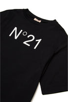 Crew-neck short-sleeved cover-up dress in jersey. N°21 Institutional logo in contrasting color on the front. Side splits. Made of 100% cotton.
